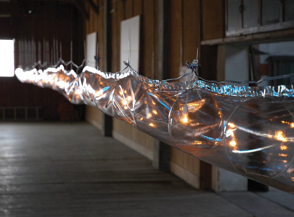 Sunlight, bees, mirrors, polyester resin, PVC tube, beeswax on hole punch cards for jacquard loom