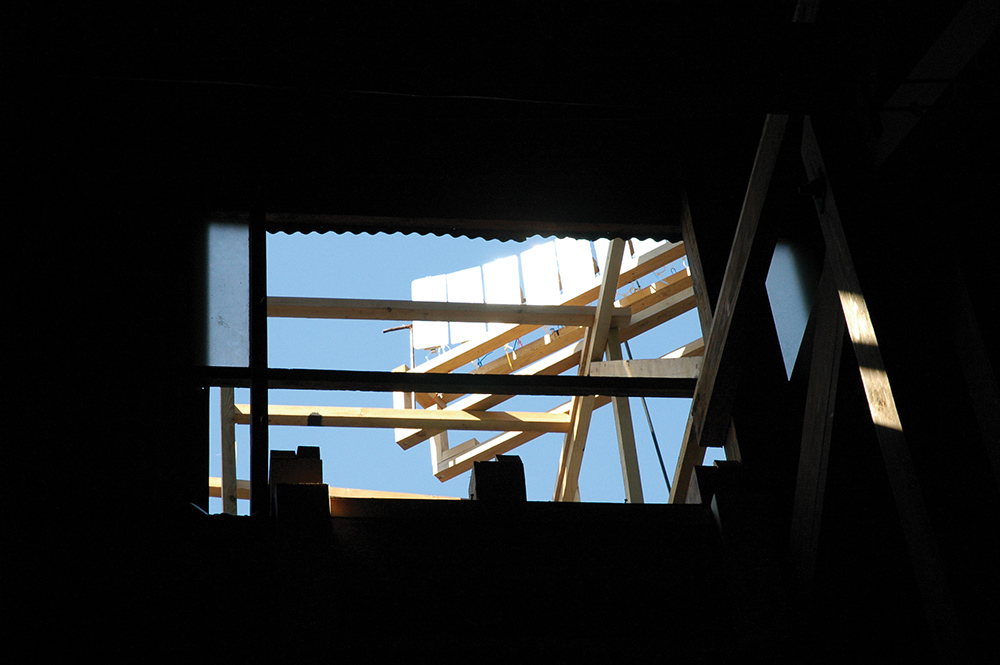 The building is an abandoned silk-textile factory in Kiryu, which was famous in the past for its silk-textile manufacturing. The saw-tooth roof allows for only northern light to enter the building, and not the direct sunlight.