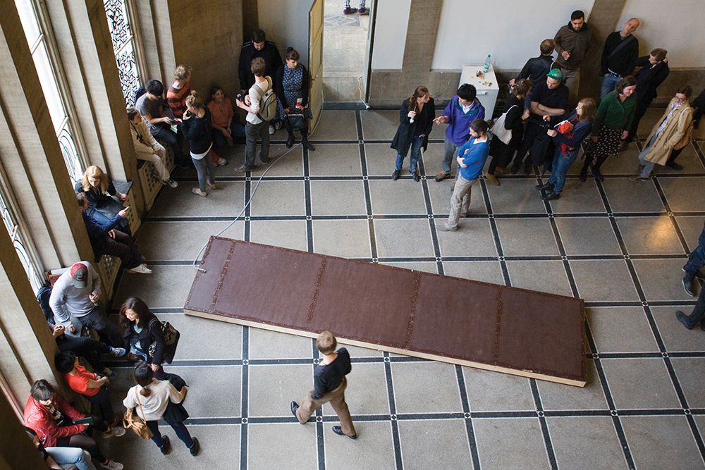 Visitors could stand on the box resembling a podium and feel the low pressure inside it.