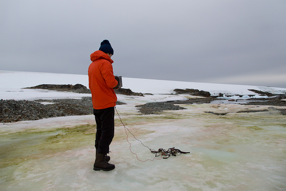 The third location for »Winter Landscape« project was the Antarctic. I took a part in an international artistic, scientific program "The 1st Antarctic Biennale." One part of "The 1st Antarctic Biennale" was an Antarctic expedition whose purpose was to carry out artistic projects, scientific researches and interdisciplinary exchanges with other participants. Participants from all parts of the world included artists, writers, philosophers, biologists, and spaceship designers among other researchers of varying disciplines.